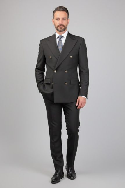 Costum Negru la Două Rânduri din Țesătură Bi-Stretch – ROSINNI