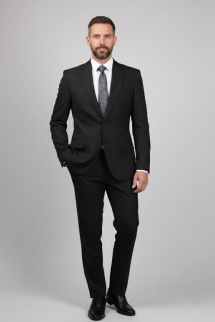 Costum Negru Texturat pentru Bărbați – ROSINNI