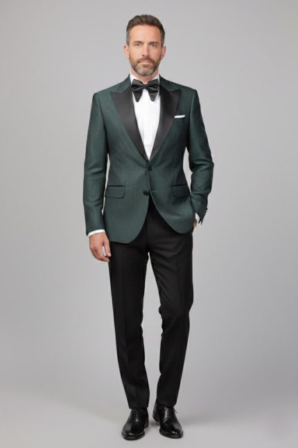 Costum de Mire Verde Texturat cu Pantalon Negru – ROSINNI