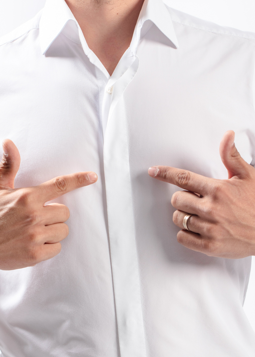 Eleganța definită prin detalii: Cămașa Albă cu Fentă Ascunsă Fiecare bărbat are nevoie de o cămașă albă de excepție în garderobă, însă nu orice model poate susține greutatea unui eveniment important. Am creat această cămașă pentru a oferi o estetică minimalistă și rafinată, eliminând distracțiile vizuale prin introducerea fentei ascunse. Prin mascarea elegantă a nasturilor frontali, suprafața pieptului rămâne imaculată – alegerea supremă pentru costumele de mire, smoking-uri sau ținutele de business la cel mai înalt nivel.