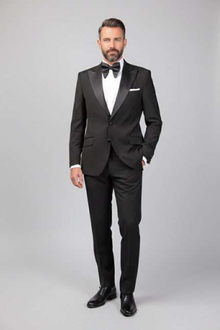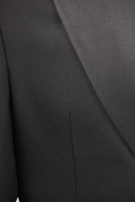 Costum de Mire Negru Texturat cu Rever din Satin – ROSINNI