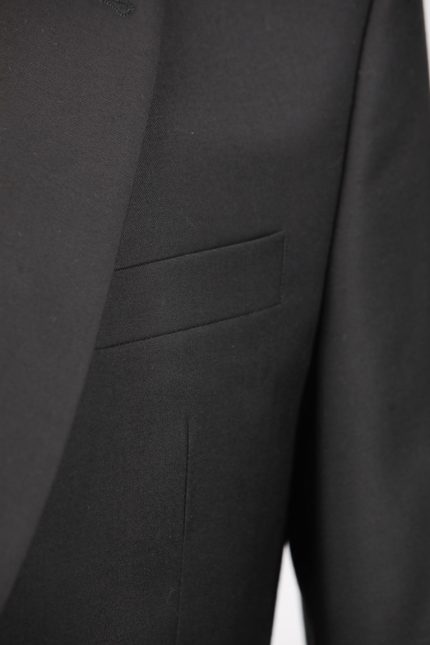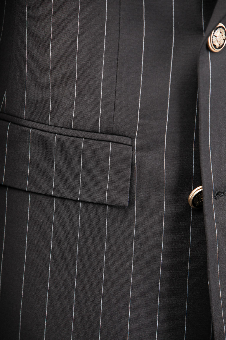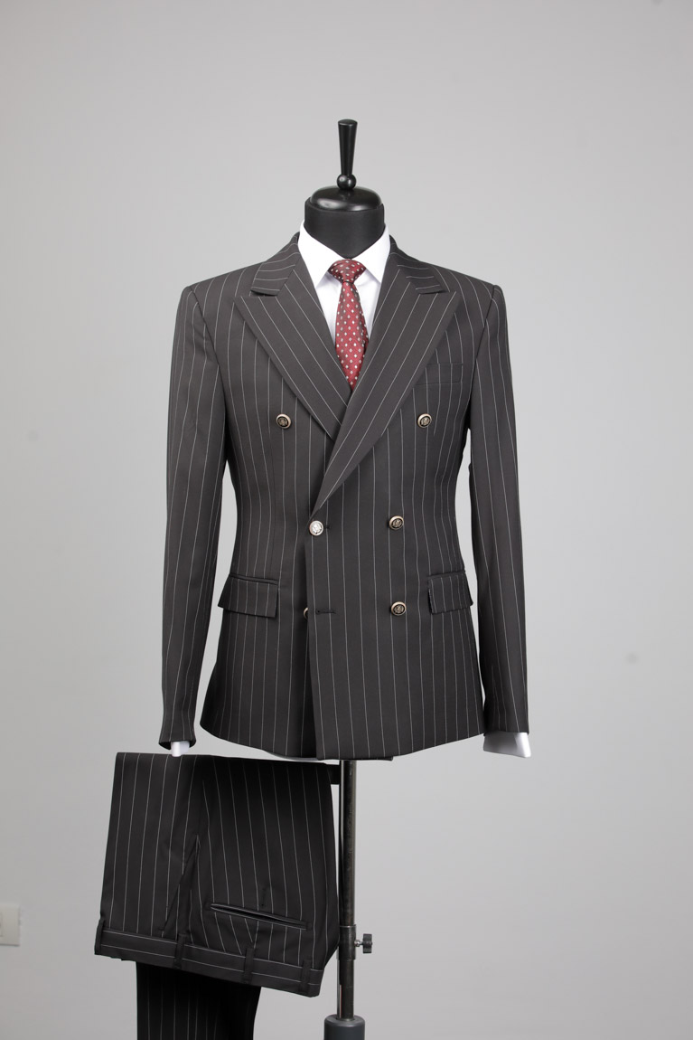 Costum Negru în Dungi la Două Rânduri – Țesătură Subțire