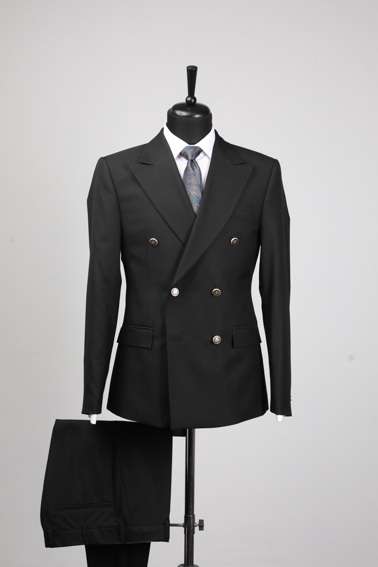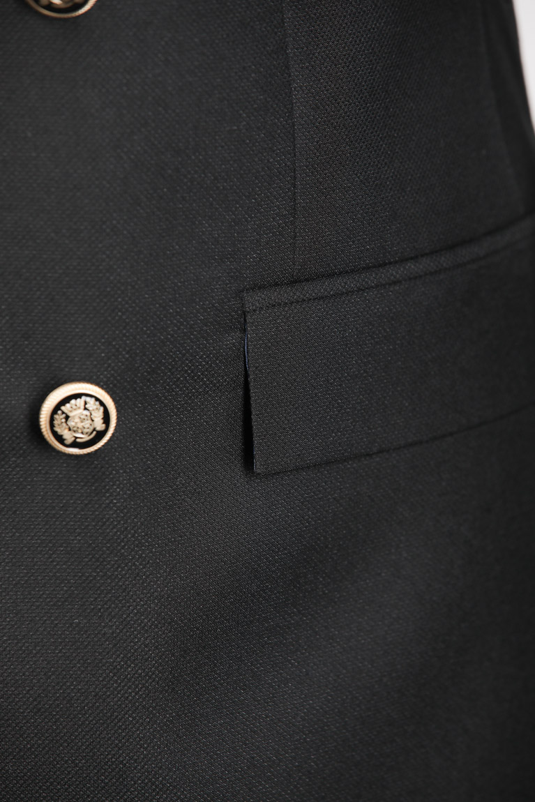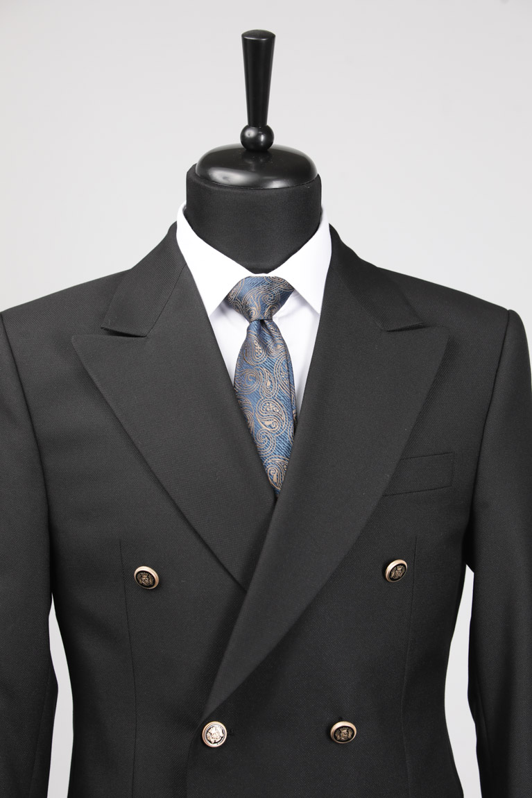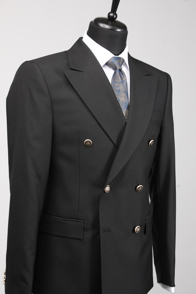 Costum Negru Texturat la Două Rânduri de Nasturi – ROSINNI
